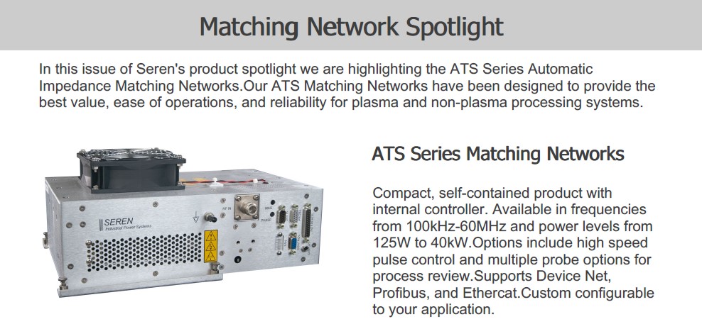 アメリカの高周波電源及びマッチングネットワークのメーカーである、